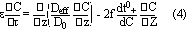The transport parameters must in this case be modified according to the following relation for the effective diffusion coefficient, compare with equation (16)