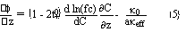 Effective transport parameters are assumed to vary according to the following relationship, written for the effective conuctivity as an example